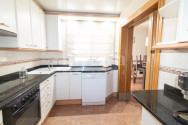 La cocina, de dimensiones espaciosas, cuenta además con una zona adicional a modo de segundo salón o comedor de diario, desde la cual se accede directamente a un patio de uso privativo.